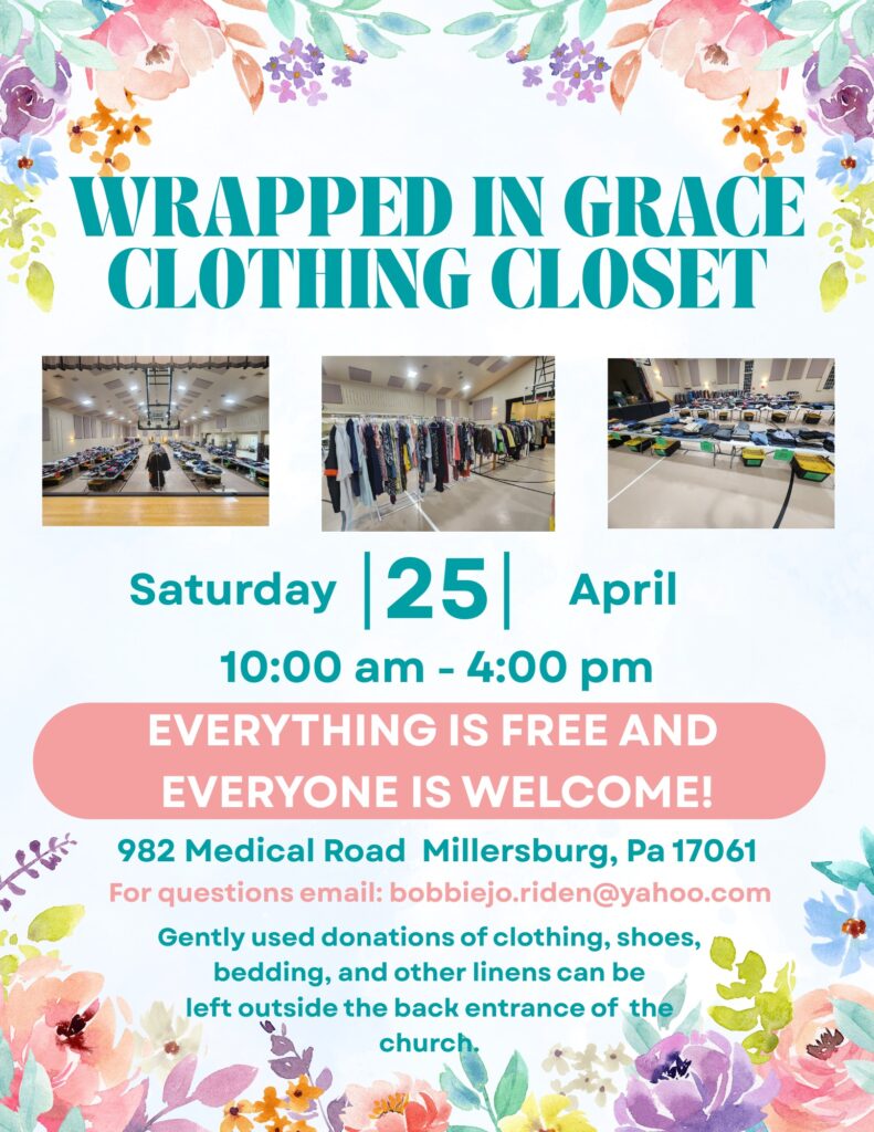Grace UMC Clothing Closet – will be held Saturday April 25th, from 10 – 3. All clothing is free.